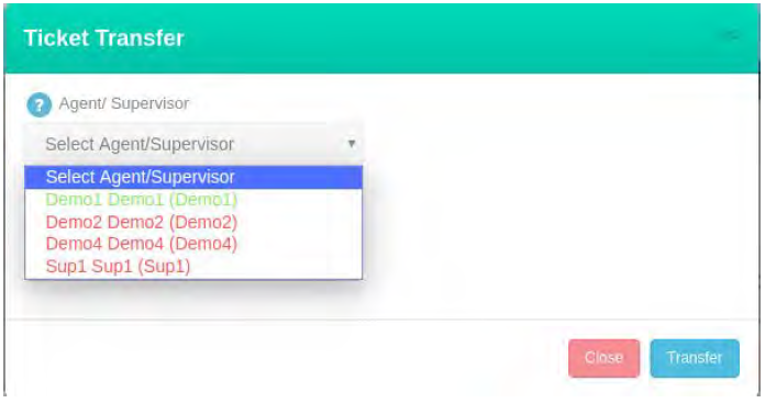 Transfer – By Clicking on Icon, agent can Transfer his own tickets to the Other Agent/ Supervisor.