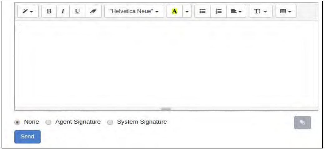 Agent Can upload Attachment to this mail by clicking on Send Attachment Button.