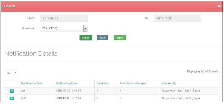 Click the ‘Reset’ button to show all the Notification details, without any filter.