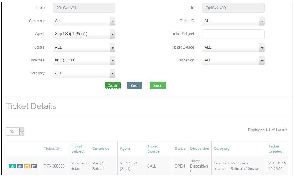 Click the ‘Reset’ button to show all the Ticket records, without any filter.