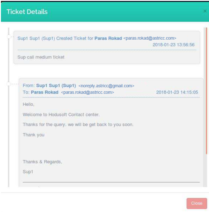 By clicking on View icon, It shows the Ticket conversation For that particular record.