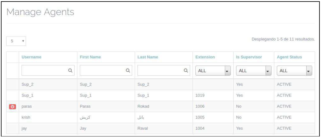 Any particular agent can be searched using the filters provided in the first row of every column.