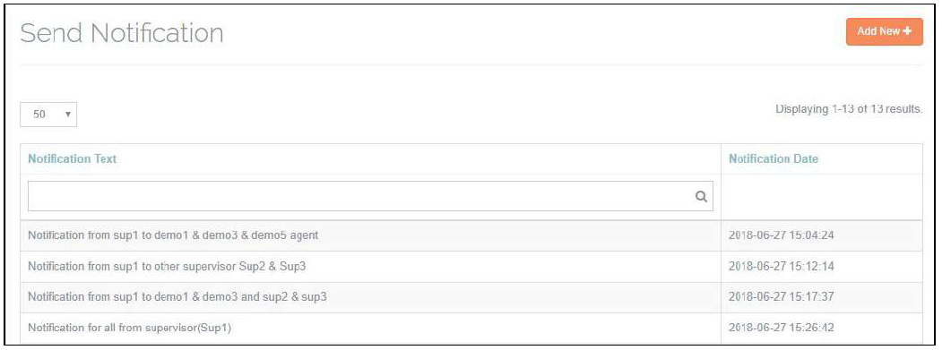 The Notification which have been added are listed on the page. To search for any particular Notification, the filters in the first row of every column can be used.