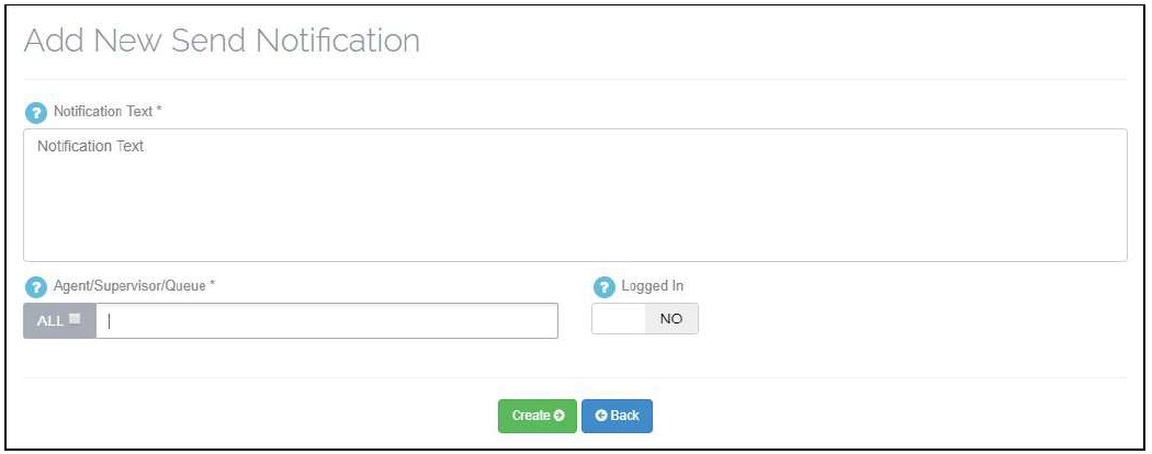 Notification Text – Enter the Text that will be sent to agent/supervisor.