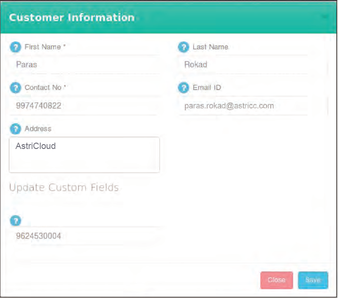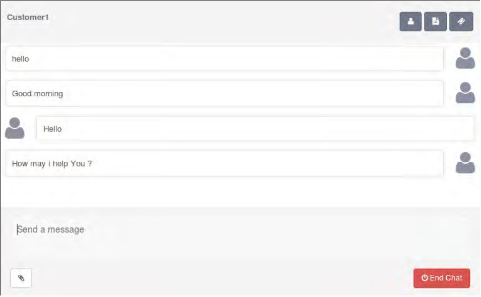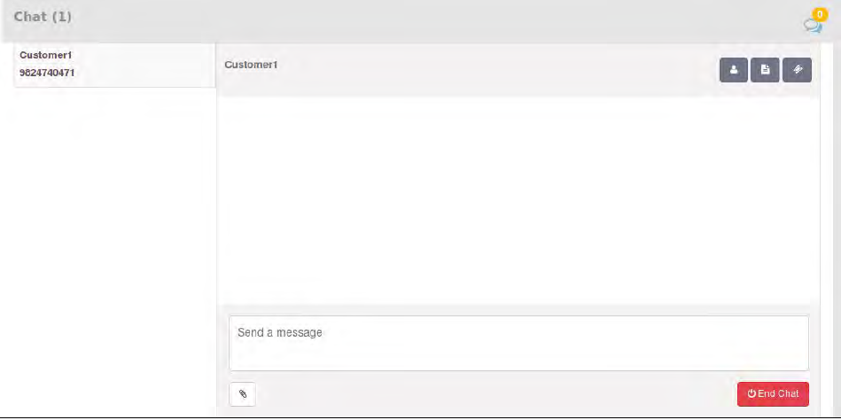 Customer information -By clicking on Customer Icon button, agent can see complete customer information for the particular chat if the same customer details exists in the customer table