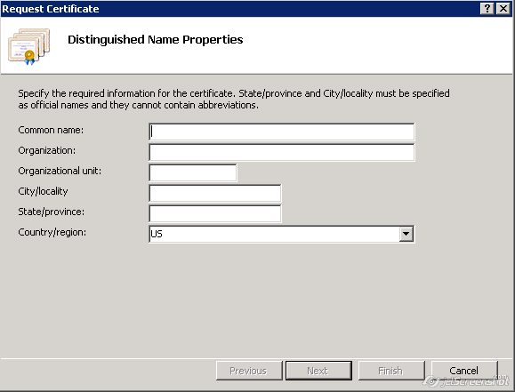 - The Request Certificate wizard will be opened. From here, you will need to enter the information required for the CSR code (details and example listed below):