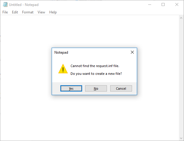 Here, the dialog window will ask whether or not you wish to create a new file. Click ‘Yes’ from the options.