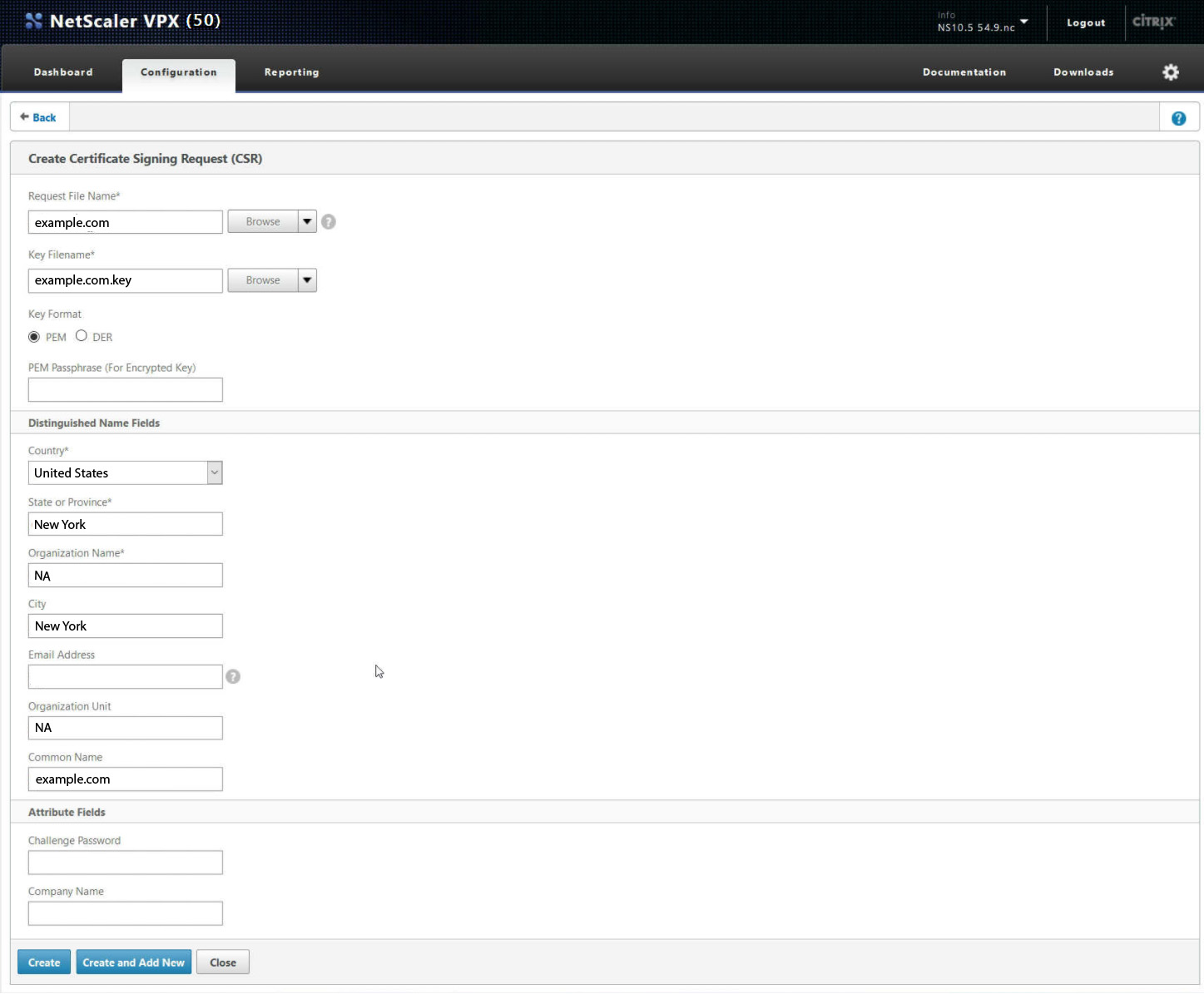 After all the necessary fields are filled in, click Create > Close to finalize CSR generation.
