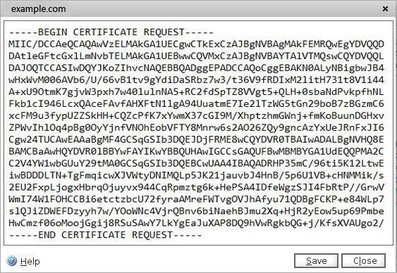 At this point, it is necessary to copy the CSR code including the header —–BEGIN CERTIFICATE REQUEST—– and footer —–END CERTIFICATE REQUEST—– or click Save to download the code on your computer.