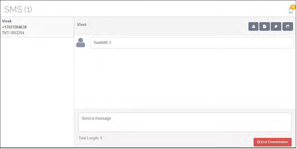 At the Left Side, All the Assigned SMS Will be listed with the information like Customer name, customer number and Ticket ID if mapped as seen in below image.