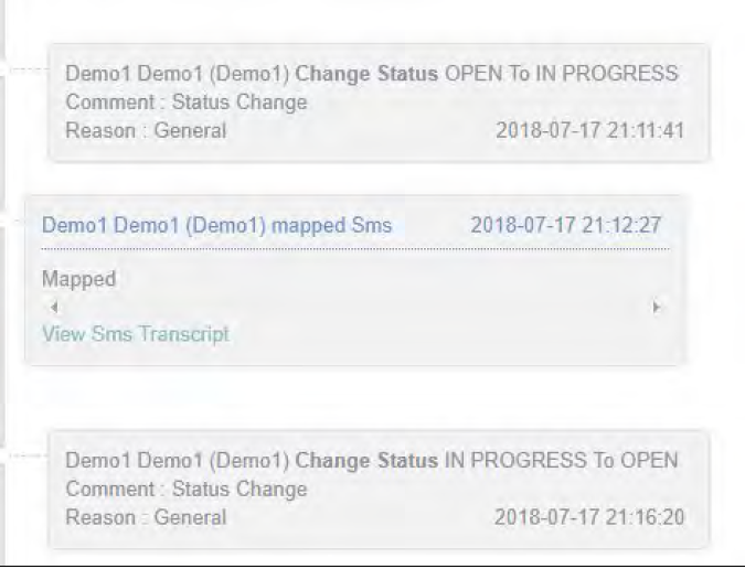 Map Ticket – By Clicking on Map Icon, Agent can Map previous Ticket of the same customer to this SMS Which are created/ received by the agent. Once the ticket is Mapped, SMS Transcript will be added to the particular Ticket